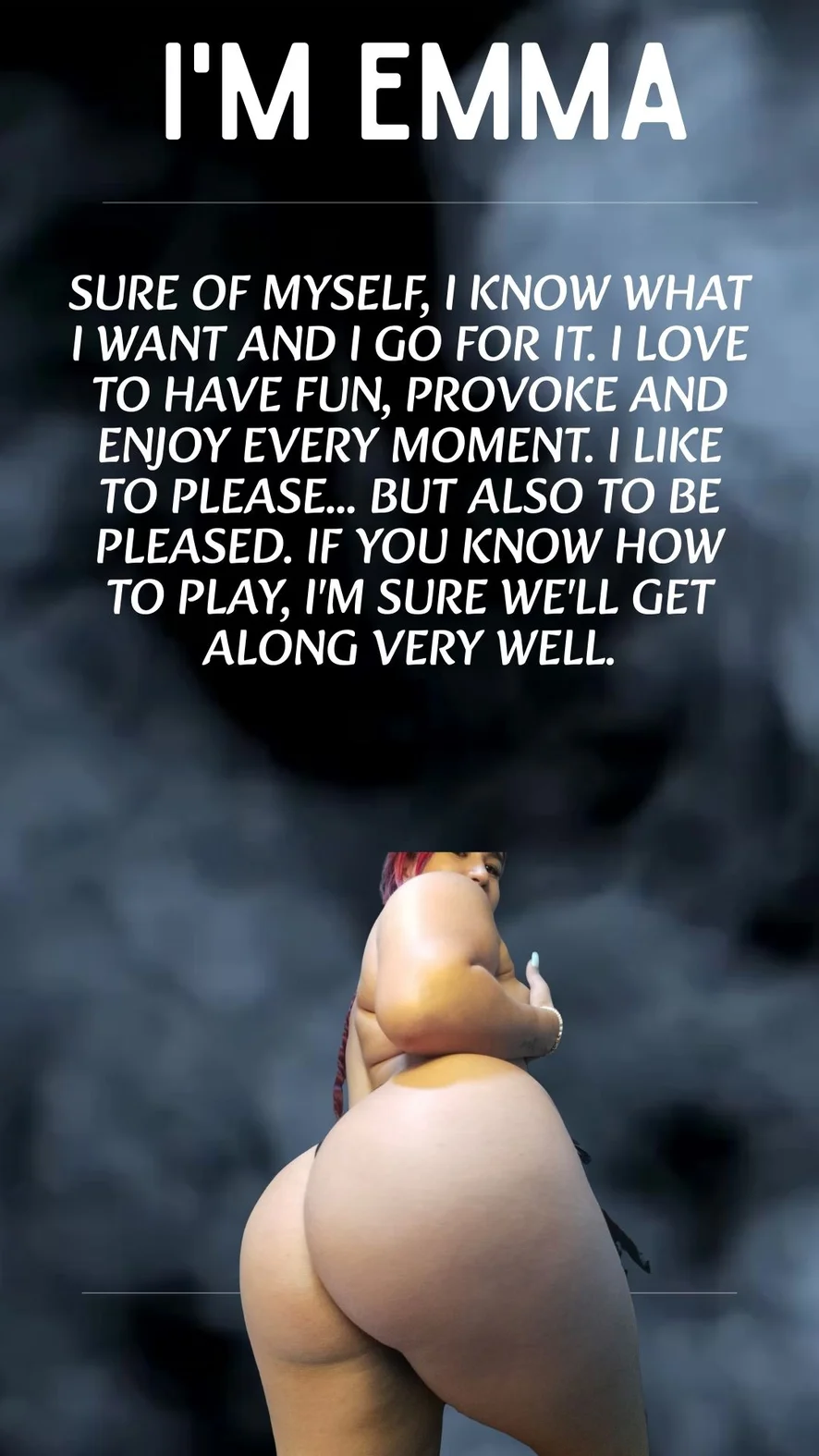 Safe, authentic and with an energy that does not go unnoticed. I know what I want and I enjoy every moment without limits. I love having fun, causing smiles and awakening desires. I like to please... but also to be pampered. If you know how to play well, we will surely have fun.